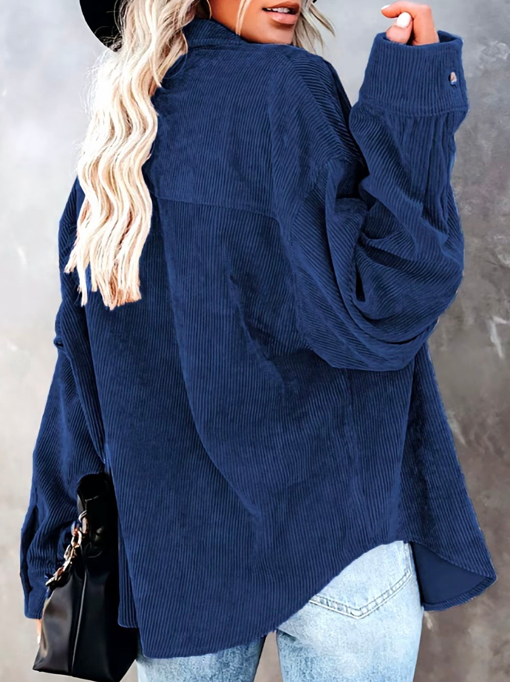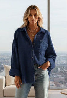Lightweight corduroy shacket. Great for layering on those cool summer nights.